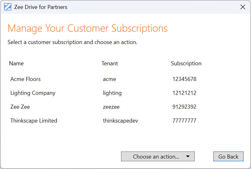 A ZeeDrive partner subscription is designed to simplify setting up and administering multiple customer subscriptions from a single interface.